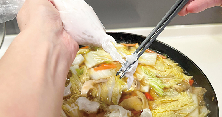料理|火鍋花枝漿基底(口味可自行調整)、花枝羹湯、自製花枝蝦卷、高麗菜卷、花枝煎餅。
