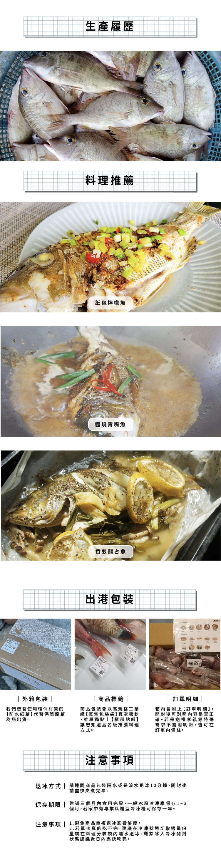 料理|乾煎、半煎煮、蔥燒、清蒸。