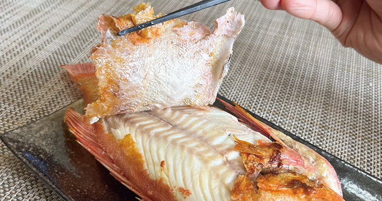 *小提醒|因為紅目鰱魚的表皮鱗片是無法去除的,所以料理完畢後,直接撕掉魚表皮就可以開動囉!