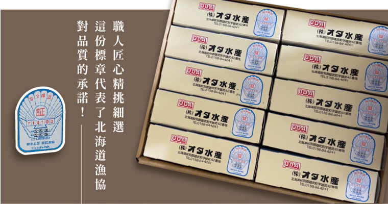 只有最高新鮮品質等級的干貝,經過日本漁協認證,才能冠上「生食級」的美譽!