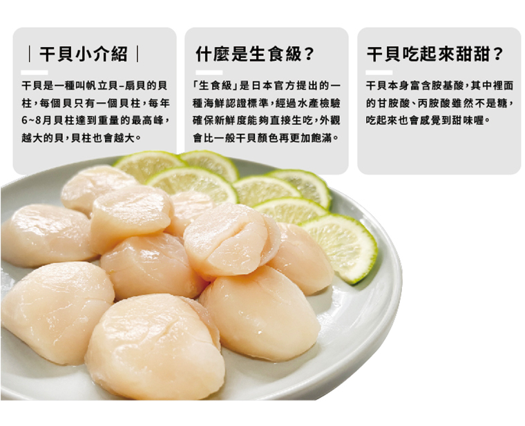 ( 我是 L 尺寸的大干貝!單顆吃起來爽感最滿足!)