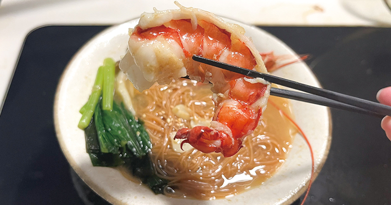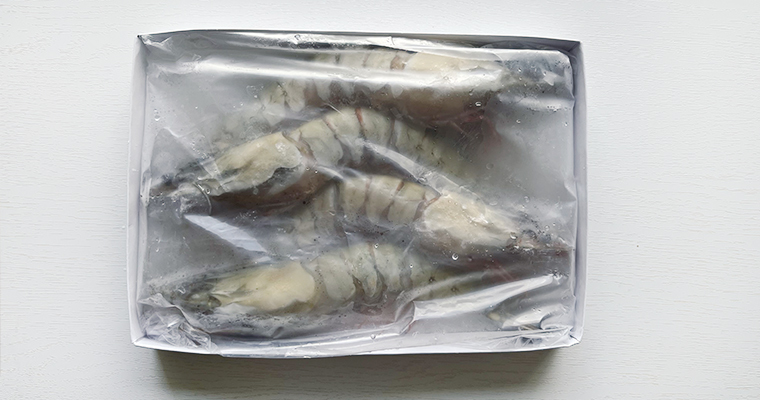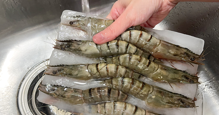 ▲ 小提醒|大草蝦有包冰,請直接用水將包冰沖開成一隻隻可分開的狀態就可以直接料理,蝦蝦類避免過退影響鮮度喔。