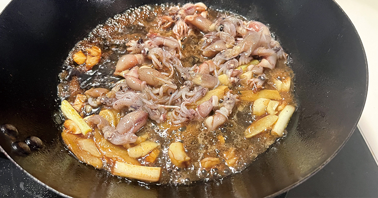 *小提醒|料理過程可以減少翻炒,可以讓螢光卷有小小爆漿的口感唷。這種臺灣的螢光小卷可以整隻吃沒有骨感~