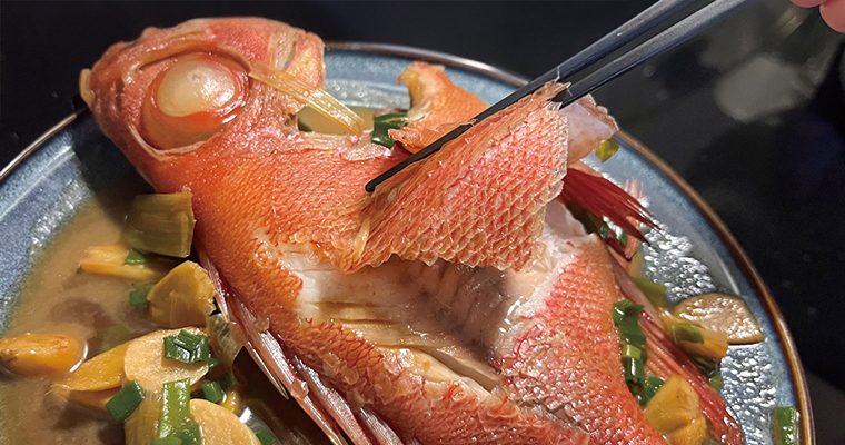 *小提醒| 紅大目鰱跟紅目鰱一樣,鱗片短而堅固,沒有去鱗,請料理後將魚皮掀開吃魚肉即可。
